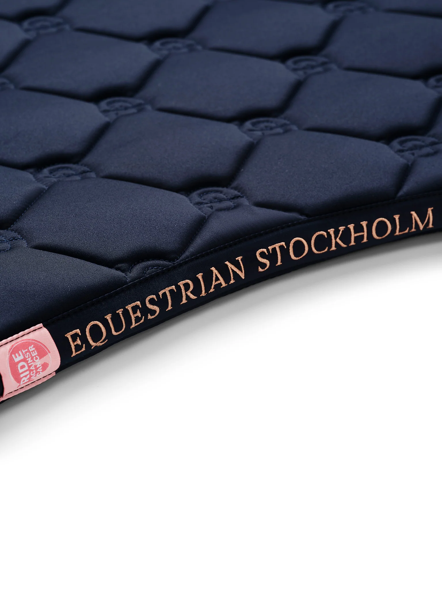 La mantilla azul de Equestrian Stockholm combina estilo y funcionalidad con un toque sofisticado. Presenta detalles en oro rosa y la placa metálica de la marca, aportando un acabado exclusivo y elegante para cualquier conjunto de equitación.