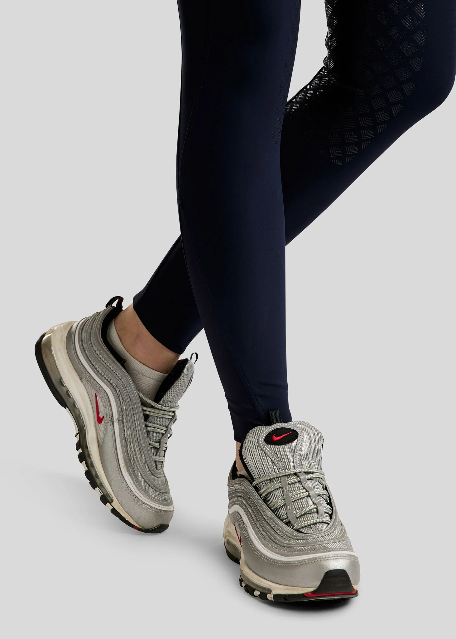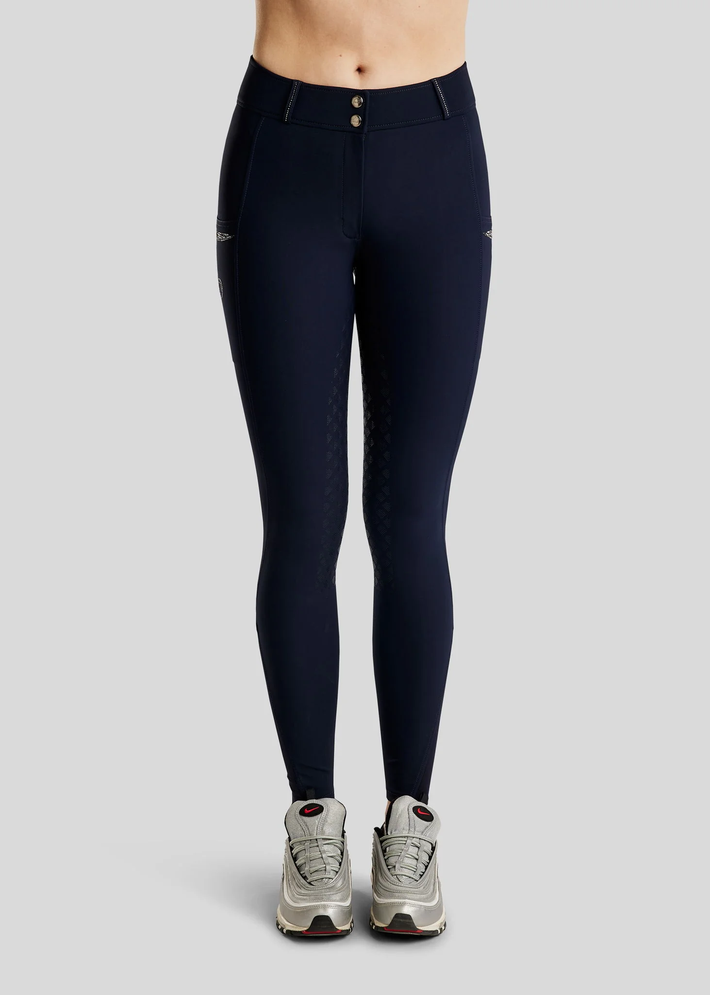 Los MoEmilia destacan por su aspecto refinado y llamativo. Cuentan con dos prácticos bolsillos para el móvil, decorados con una mezcla de cristales grises que aportan brillo sin perder sutileza. Además, el logo Montar en cristales añade un detalle exclusivo que realza el estilo y la feminidad del conjunto.